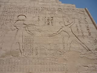 [17] Denominazione attuale della località che accoglie un insieme di edifici dell’antico Egitto, dedicati al culto di divinità. È situata sulla sponda occidentale del Nilo, in prossimità di Tebe.